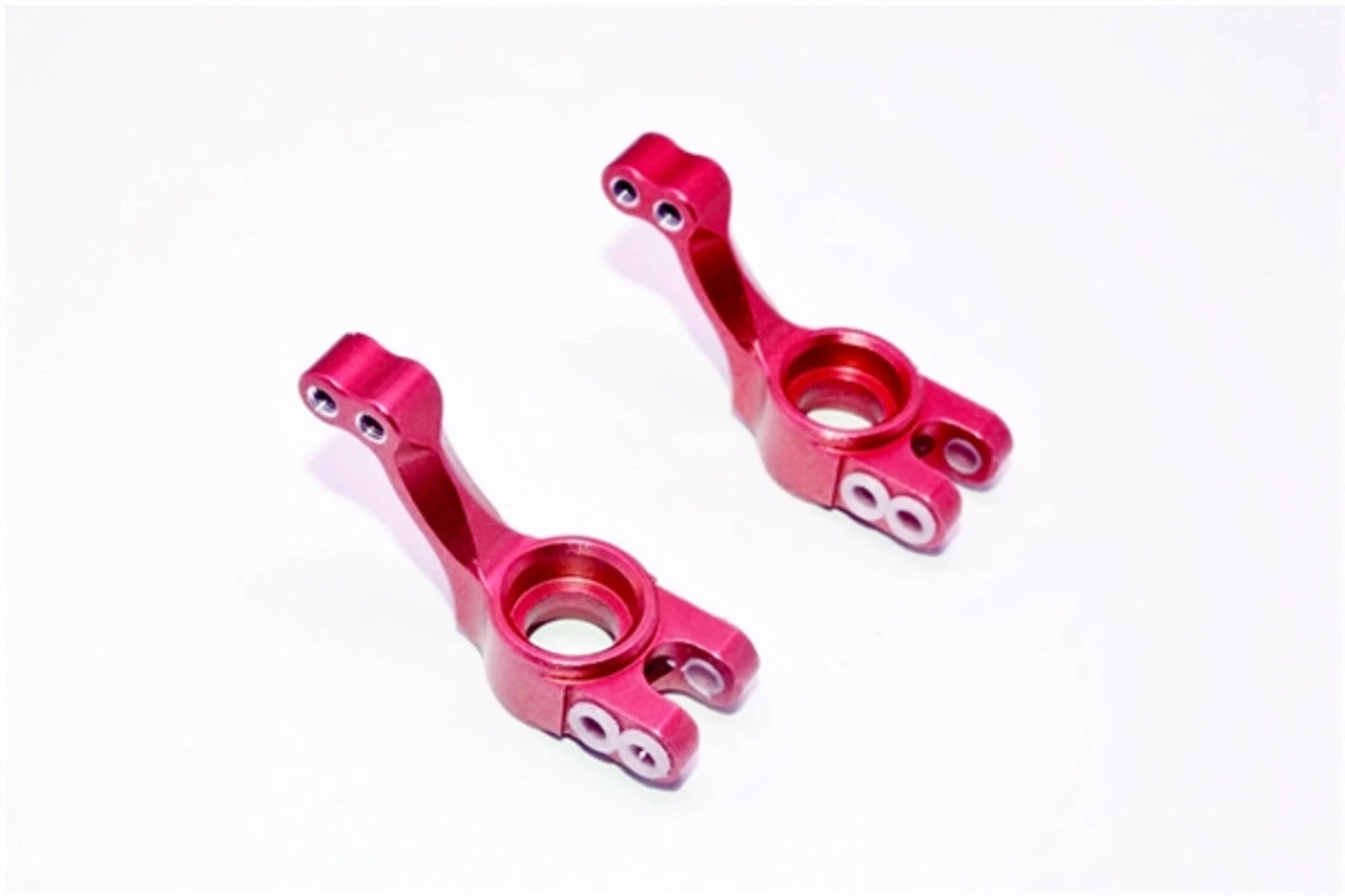 These are the GPM Racing Red Aluminum Rear Stub Axle Carriers for Traxxas electric Slash 2WD, Rustler 2WD, Stampede 2WD, and Bandit vehicles. These are made of 6061-T6 aluminum and anodized to finish them off. They are durable and look great!