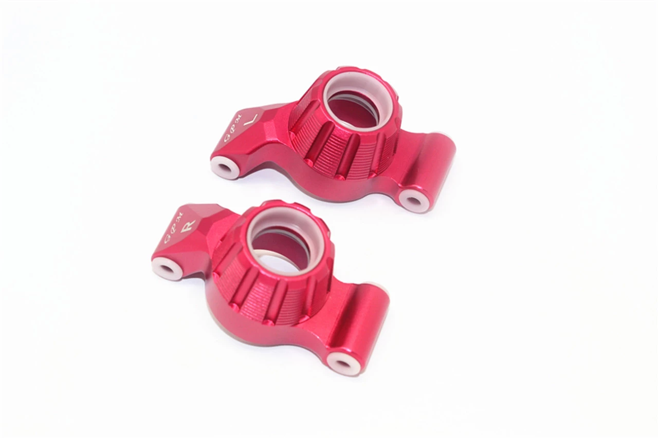 These are the GPM Red Aluminum Rear Stub Axle Carriers for the Traxxas 1/10 Maxx 4S truck. Made of 6061 T6 aluminum with an anodized finish, these look great and hold up under extreme bashing!