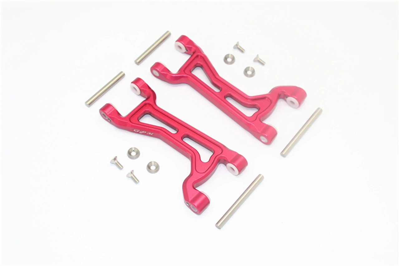 These are the GPM Racing Red Aluminum Upper Suspension Arms for the front or rear of the Traxxas 1/10 Maxx 4S trucks. Made of 6061 T6 aluminum with an anodized finish, these are a great way to dress up your truck and improve durability. Stainless steel hinge pins are included.