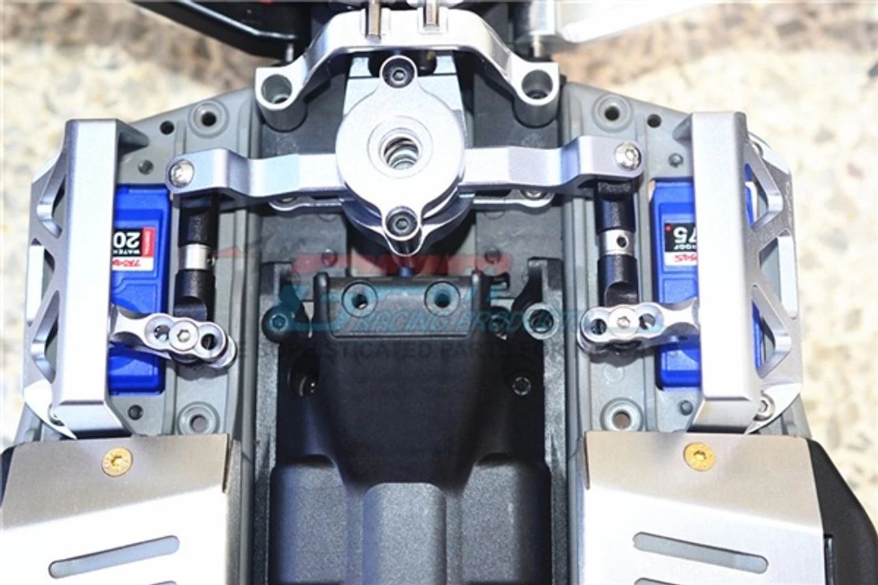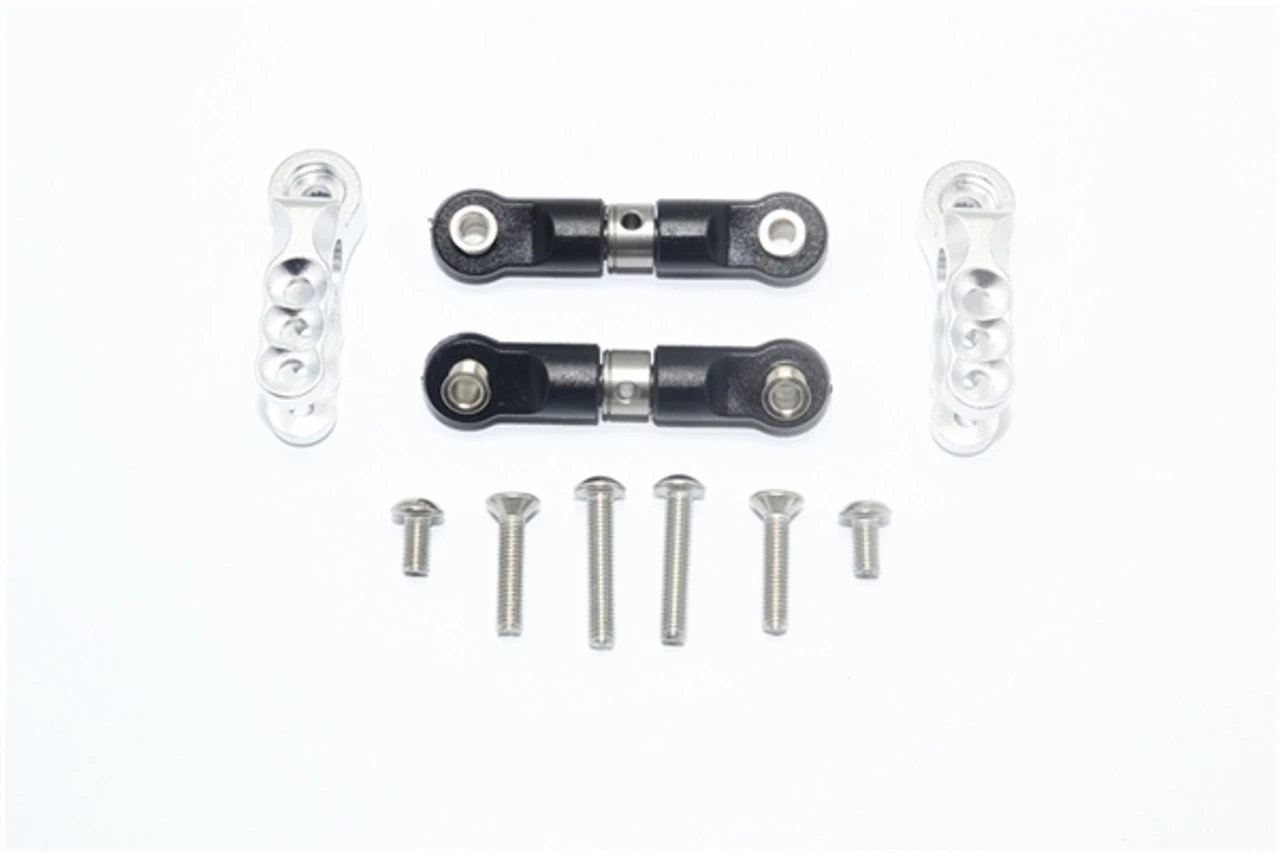These are the the GPM Racing Silver Aluminum 25T Spline Servo Horns with Adjustable Stainless Steel Links for the Traxxas 1/10 E-Revo 2.0 VXL Brushless, 1/10 E-Revo Brushed & Brushless, and the 1/10 Summit trucks. Made of 6061-T6 aluminum and anodized for a beautiful finish, these arms offer improved strength and great looks.