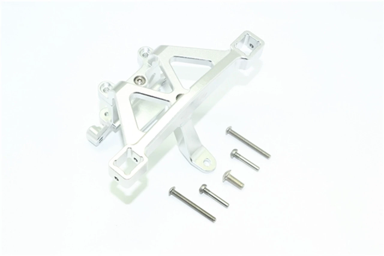 This is the GPM Racing Silver Aluminum Front Body Mount Set for Traxxas 1/10 E-Revo 2.0, E-Revo Brushed & Brushless, Revo 3.3, Slayer, and Summit trucks. Made of 6061-T6 aluminum, this mount is super tough and looks stunning with its anodized finish.