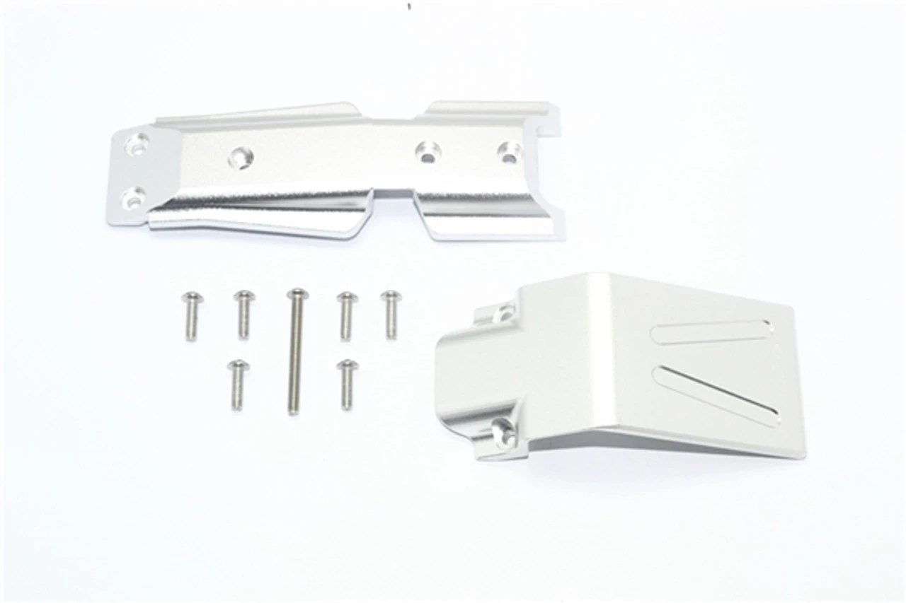 This is the GPM Racing Silver Aluminum Front Skid Plate Set for the Traxxas 1/10 E-Revo 2.0 VXL Brushless trucks. Made of 6061-T6 aluminum and finished in anodized coloring, these are super durable and help make your truck stand out! Stainless steel mounting screws are also included.