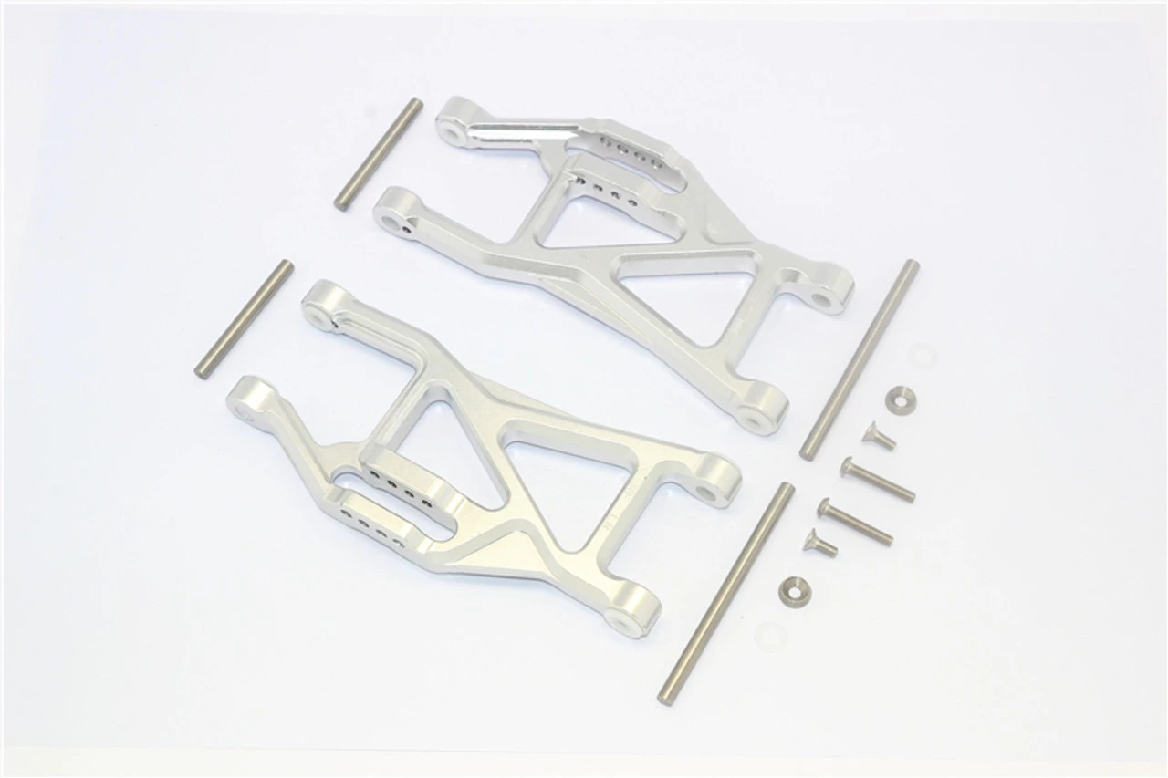 These are the GPM Racing Silver Aluminum Lower Suspension Arms for the front or rear of the Traxxas 1/10 Maxx 4S trucks. Made of 6061 T6 aluminum with an anodized finish, these are a great way to dress up your truck and improve durability. Stainless steel hinge pins are included.