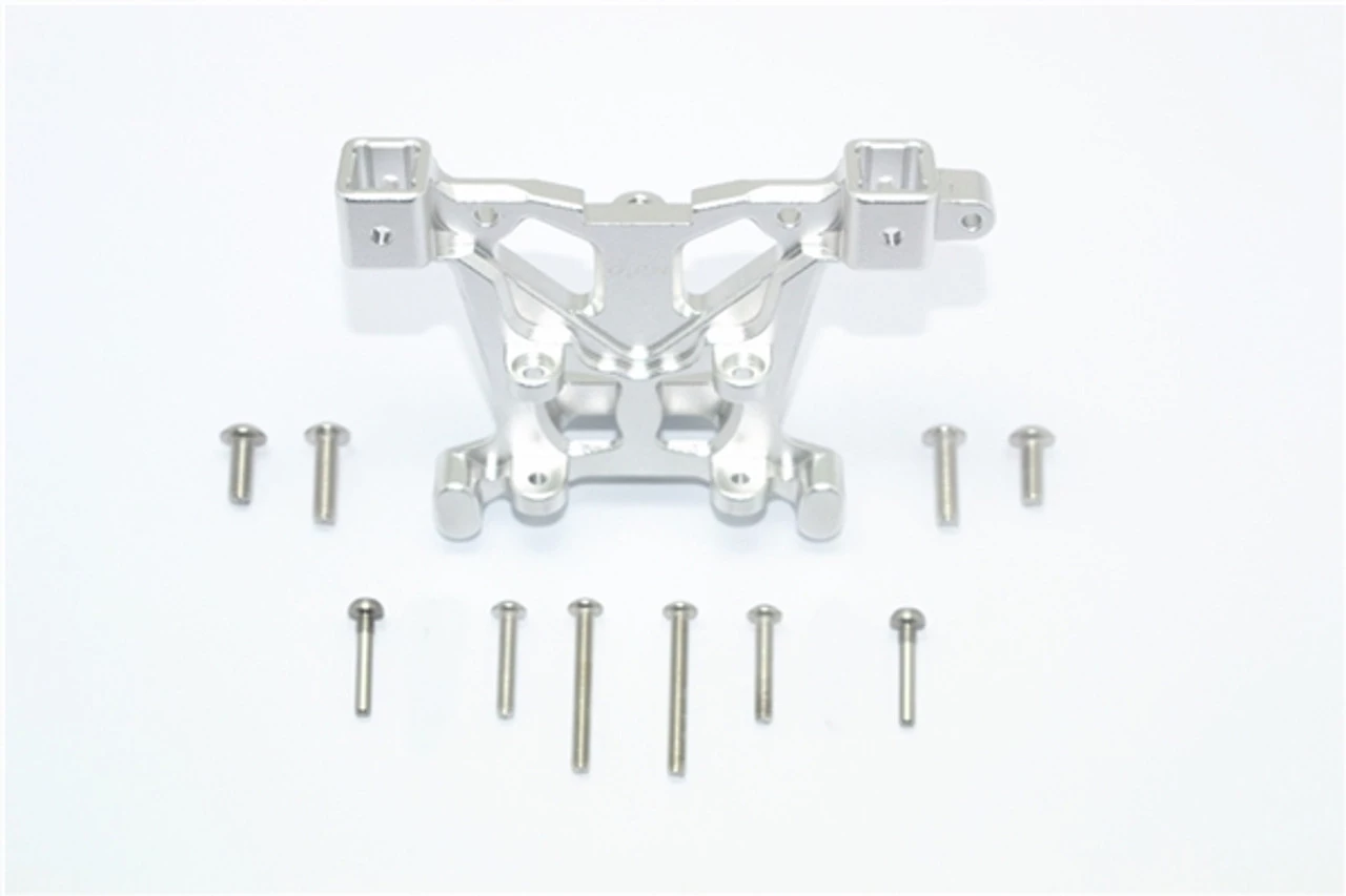 This is the GPM Racing Silver Aluminum Rear Body Post Mount Set for Traxxas 1/10 E-Revo 2.0, E-Revo Brushed & Brushless, Revo 3.3, Slayer, and Summit trucks. Made of 6061-T6 aluminum, this mount is super tough and looks stunning with its anodized finish.