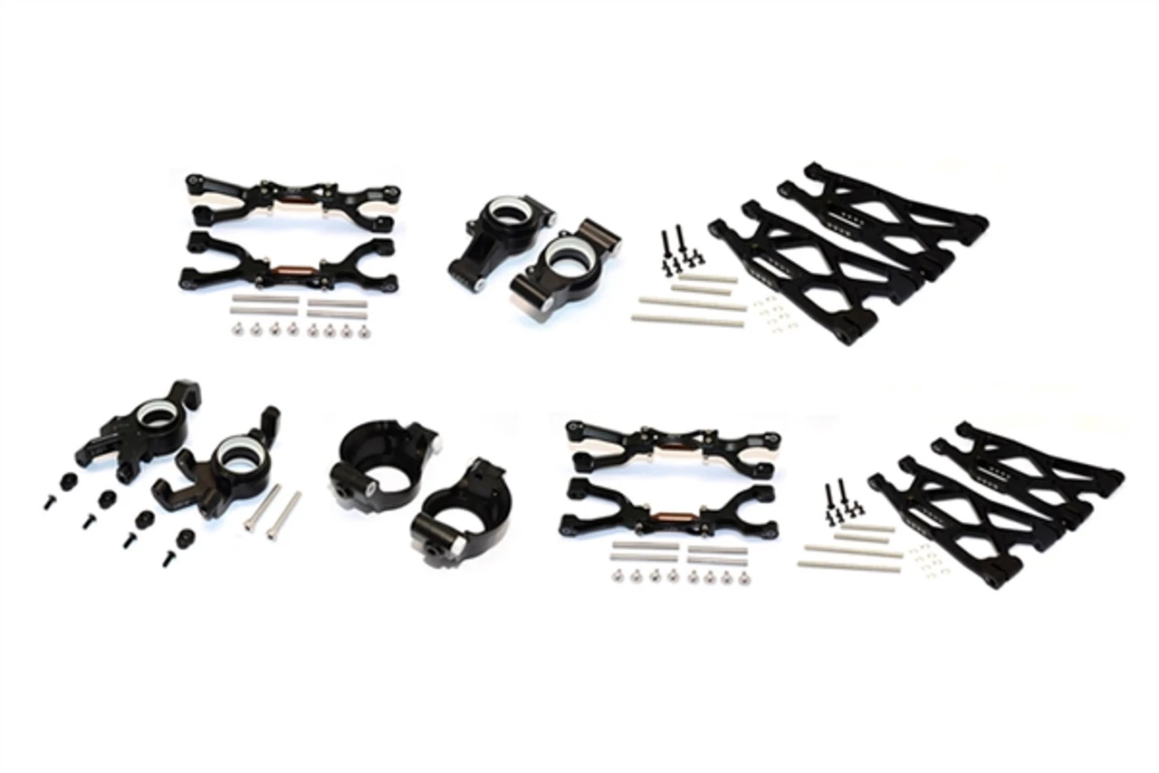 This is the GPM Racing Traxxas X-Maxx Complete Black 6061-T6 Aluminum Suspension Upgrade Kit. This set includes a full set of adjustable upper suspension arms, lower suspension arms, front steering blocks, front C-hubs, rear stub axle carriers, stainless steel hinge pins, and complete hardware.