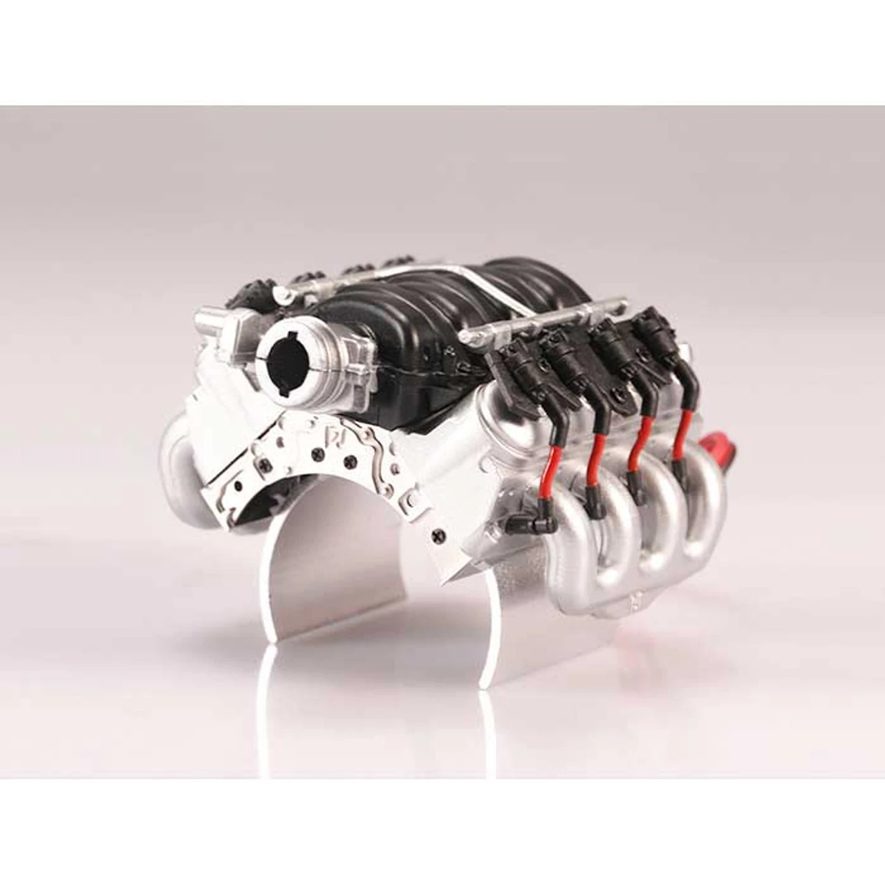 This is the GPM Racing Mock Chevy LS3 V8 Engine with Cooling Fan with Silver Heads for use in the Traxxas TRX-4. With a built-in temperature sensor, the high-speed fan turns on as the motor heats up, and shuts off if it is running cooler. Use this scale accessory to boost the realism on your next RC crawler build!