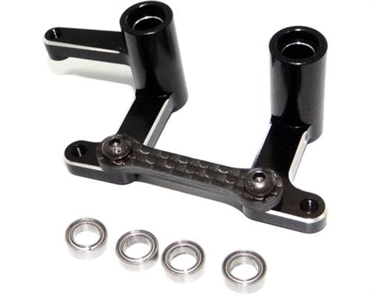 – CNC machined 6061 aluminum bellcranks, anodized black with chamfered edges