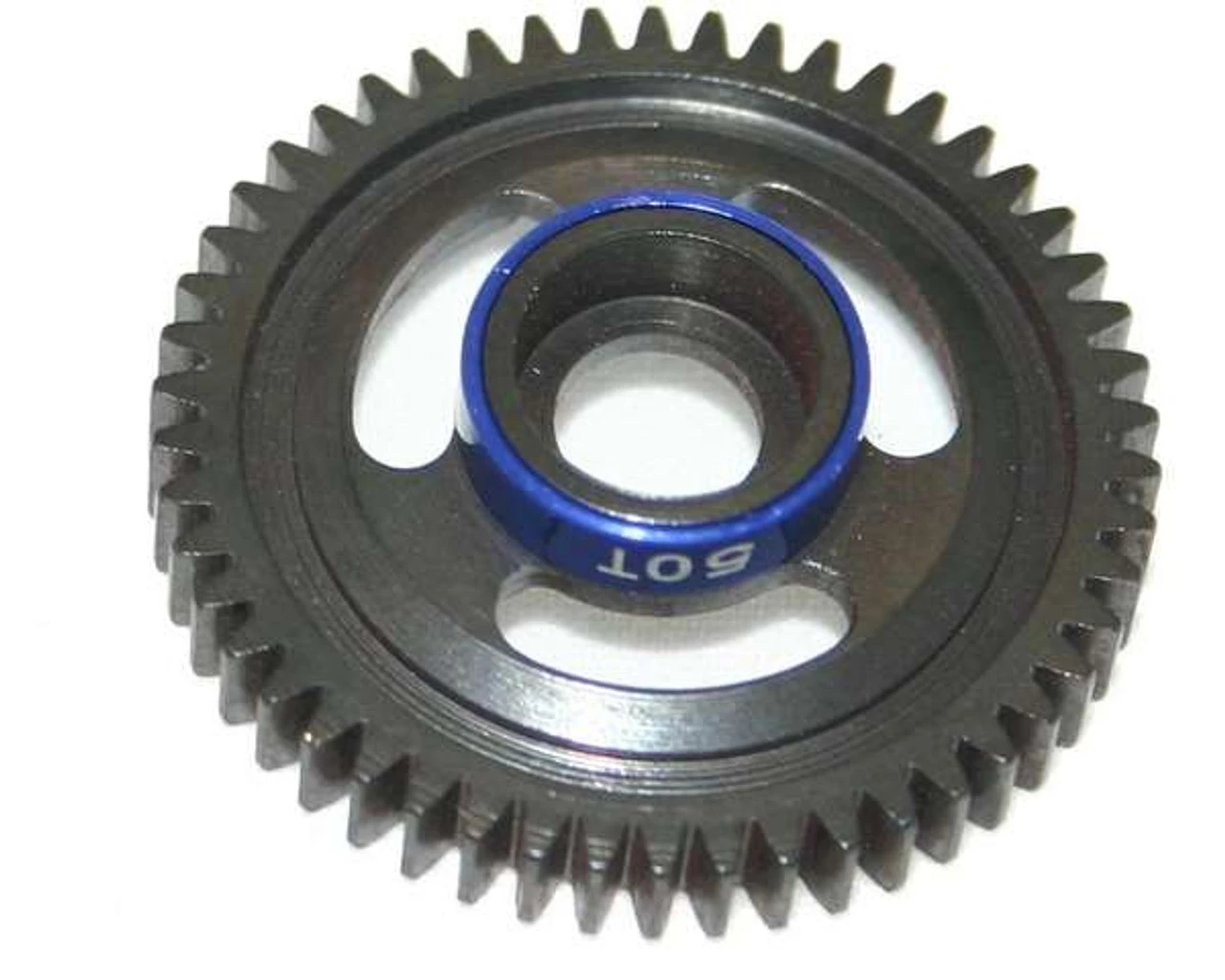 This is the Hot Racing Hardened Steel Lightweight 50-Tooth Spur Gear for Traxxas 1/16 Vehicles like the 1/16 E-Revo, 1/16 Slash 4×4, 1/16 Summit, and 1/16 Rally.