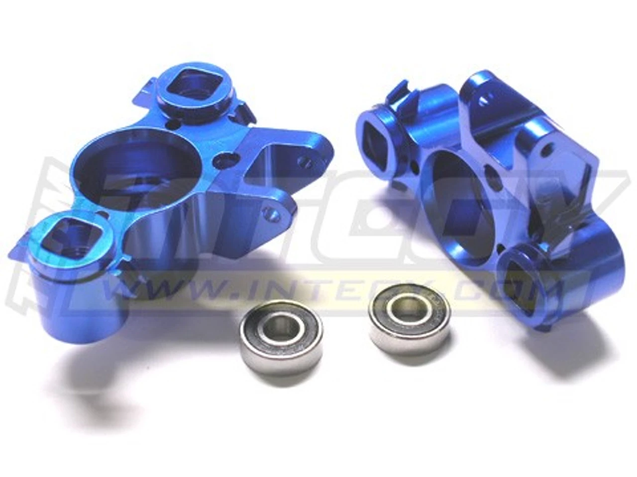 This is a set of two Team Integy Blue Aluminum Left and Right Steering Blocks for the Traxxas Revo 2.5, 3.3, E-Revo, E-Revo Brushless, Summit, and Slayer trucks. These look much better and are stronger than the stock plastic pieces. These include new bearings. These will work on the front or rear of the truck. If you need a full set of four to do the front and rear, purchase a quantity of “2” sets of these.