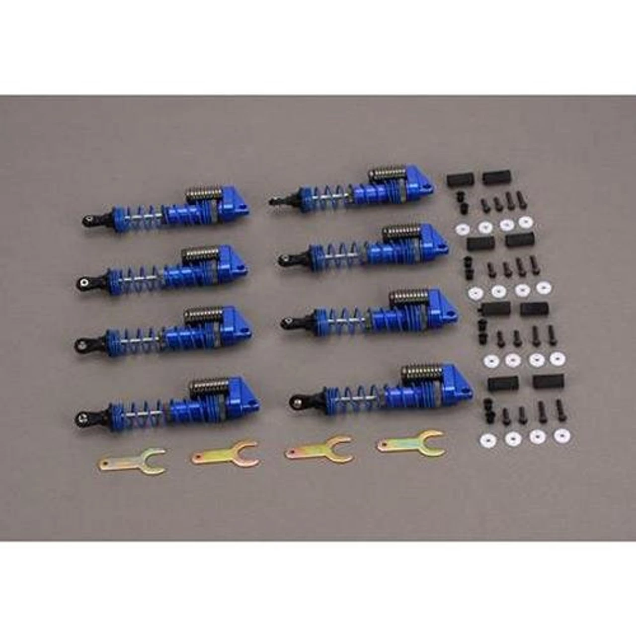 INCLUDES: Eight Assembled Blue Aluminum Piggyback Shocks