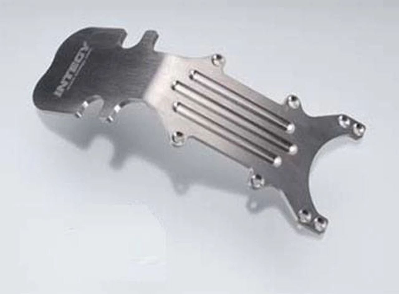 This is the Team Integy Titanium Rear Skid Plate for the Traxxas T-Maxx and E-Maxx trucks. This will fit the T-Maxx .15, 2.5, 2.5R, 3.3 (all versions), and E-Maxx (all versions) trucks. This is much stronger and more durable than an aluminum skid plate. It looks awesome and unique too!