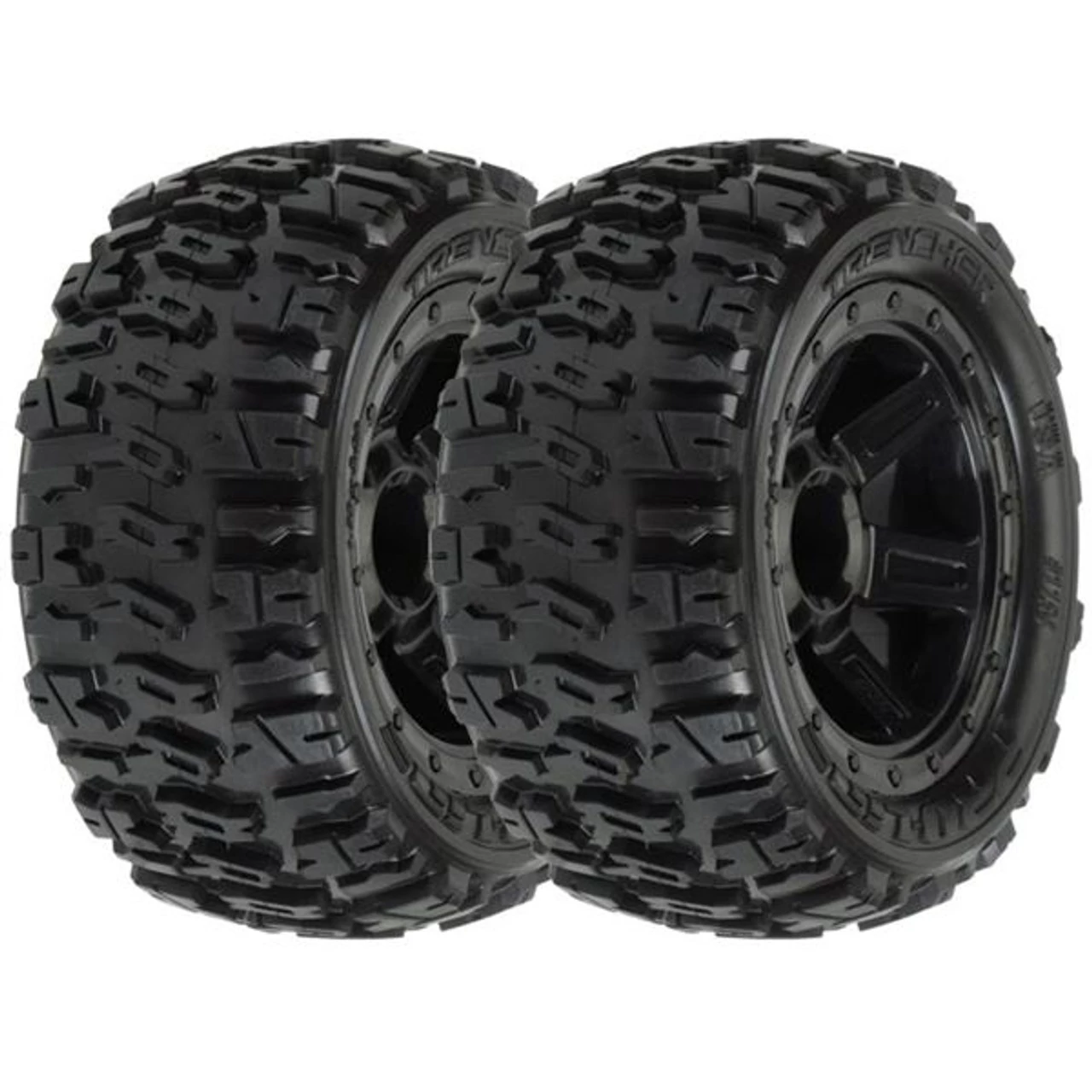 This is a pair of pre-mounted Trencher 2.2″ 1:16 E-REVO Tires. Leave a mark with your Mini E-REVO wherever you go with Pro-Line’s Trencher tires. The Trencher 2.2″ tires are designed to give your Mini optimal traction on just about any surface. Super cool horizontal H shaped treads give your truck ridiculous amounts of forward bite. With a tall tread height, you’ll find that durability and longevity are second to none. The Trencher is the Ultimate Bashing tire!