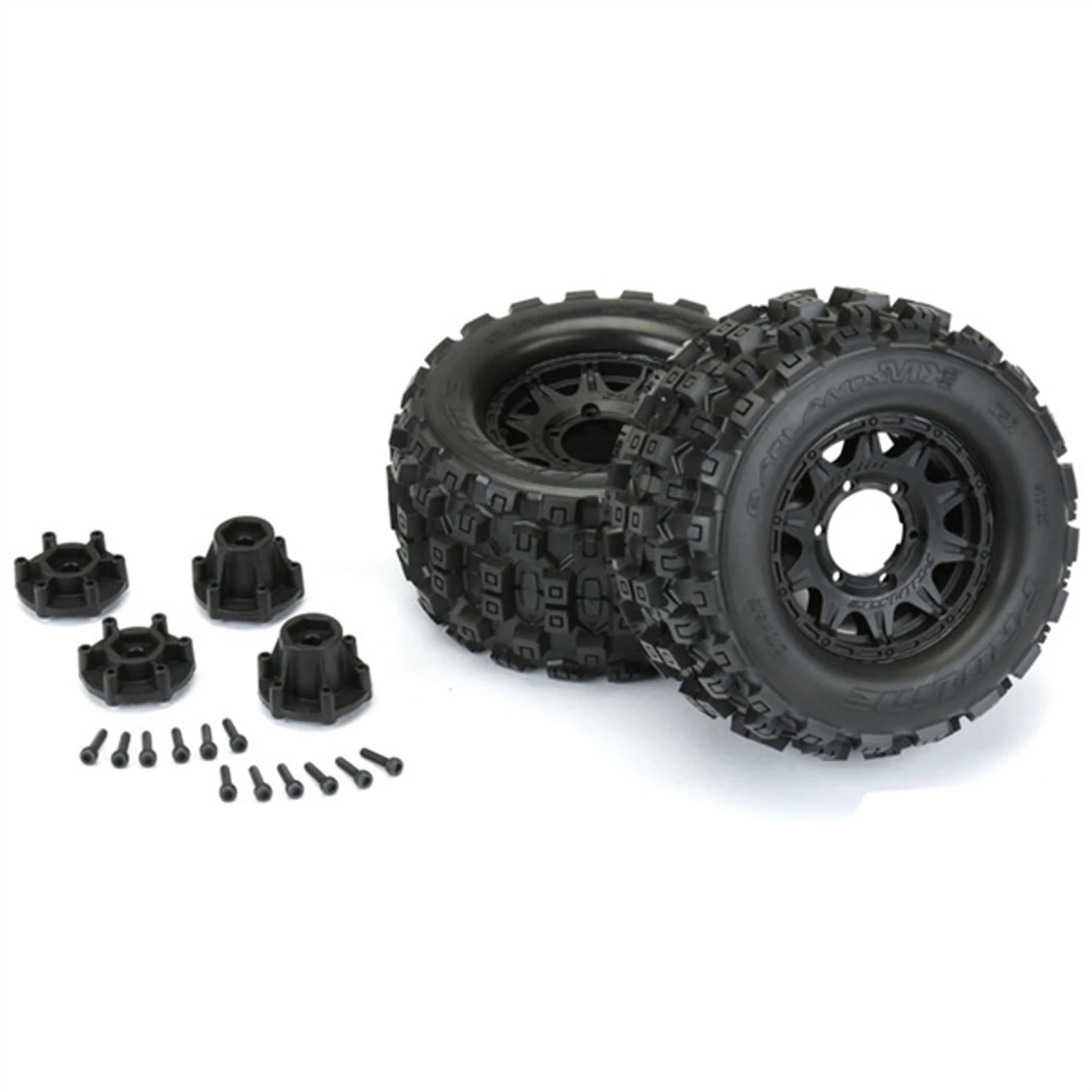 Pro-Line is very excited to announce the availability of the Badlands MX 28 2.8″ tire pre-mounted to the Raid Black Removable Hex wheel! Pro-Line is taking the 2.8″ tire game to the next level with the Biggest and Baddest tire ever conceived: the Badlands MX28! Pro-Line Badlands tires are known for having sweet Motocross inspired tread and the Badlands MX28 tires kick that up a notch with a Bigger and Bolder knobby tread that matches modern MX tire design.