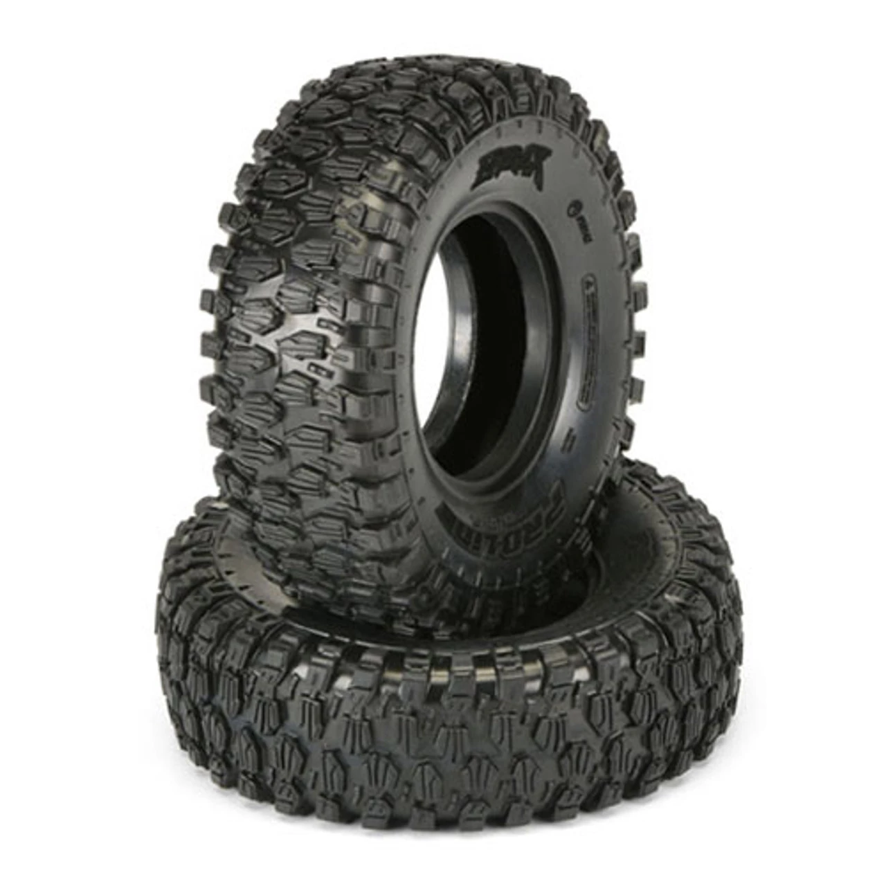 Designed from the ground up for maximum grip on the toughest terrain, the Class 1 legal Hyrax tire is ready for anything your Scale Adventure might throw at you. The Hyrax features an aggressive and open tread pattern with each tread block containing multiple Sipes for incredible tread flex while still looking great on a Scale Rig. The highly detailed connected tread on the sidewall of the Hyrax extends out for unmatched side-hilling performance and the futuristic stepped tread blocks create even more forward gripping edges that dig into slick rock like no other scale tire Pro-Line has produced to date! The Hyrax is made from Pro-Line’s Legendary G8 material, so you know it provides performance you can depend on.
