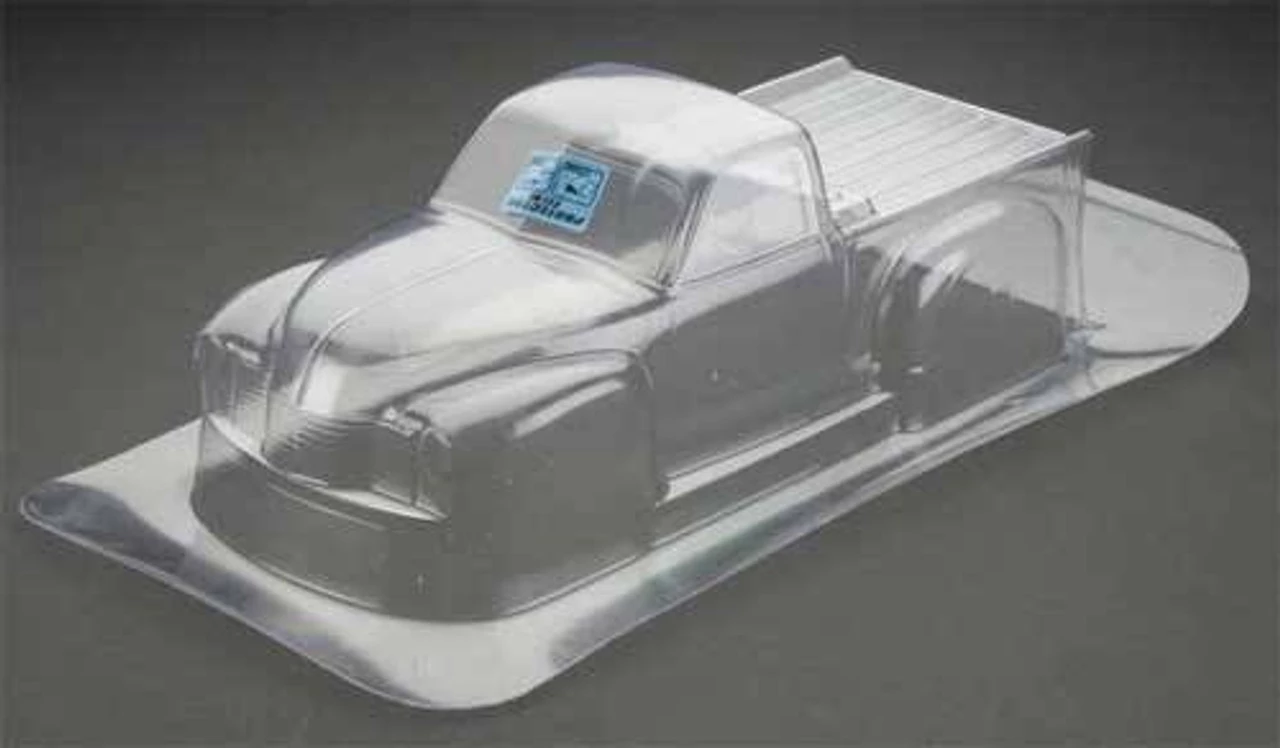 This is a Pro-Line Early 50’s Chevy Body for the the Traxxas Stampede Electric and Nitro Stampede trucks. This will also fit the Axial AX10 and SCX10 crawlers and trail trucks, and the Tamiya CR-01 trucks. The body is supplied clear (unpainted), and is only shown painted in the image to better show the shape of the body.