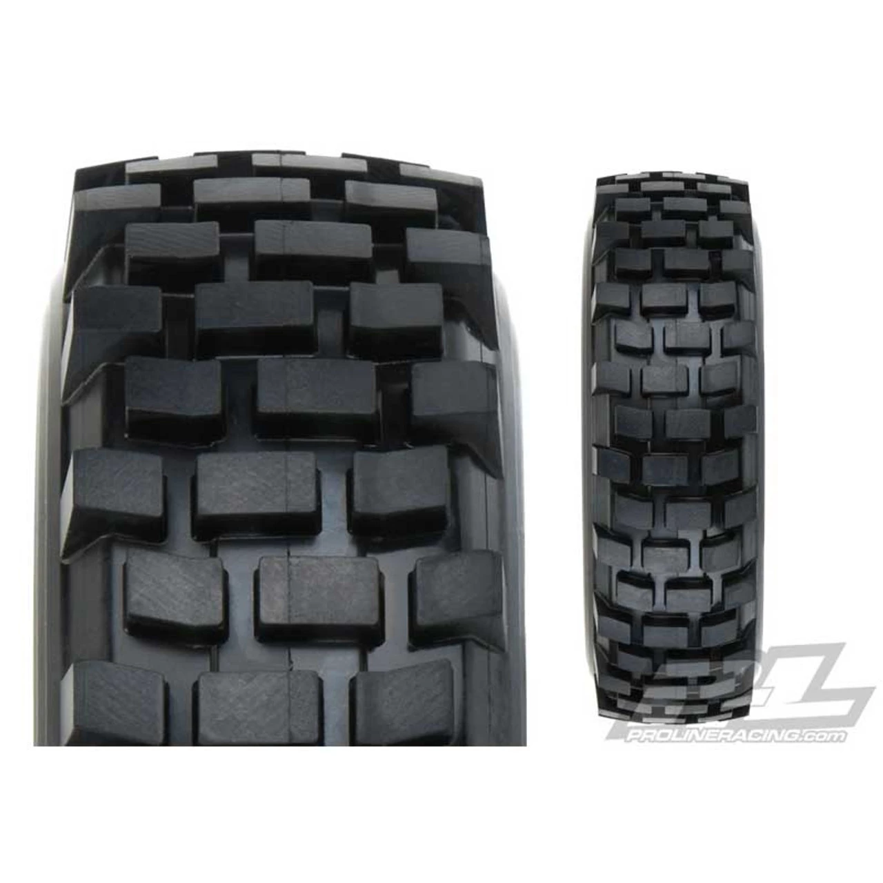 Pro-Line is ready to equip and mobilize the fleet of military crawlers with the all-new combat-ready Grunt 1.9″ tires! The Grunt has been designed from the ground up to give your military build the scale looks and performance that you need to outmaneuver the enemy. Coming in at 4.4″ tall by 1.4″ wide the Grunt 1.9″ the tire is the perfect size for single or dually military tire applications. The tread features alternating rows of 3 tread blocks that will charge through trenches and take no prisoners. The stepped sidewall not only looks scale but also adds protection from sharp jagged rocks. The Grunt 1.9″ tires are made from Pro-Line’s legendary G8 rock crawling compound, so you know they will have the grip you need.