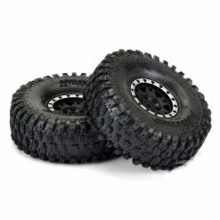 The future of 1.9″ Tire Performance has arrived with Pro-Line’s Hyrax Tire mounted to Impulse Black/Silver Wheels! Designed for maximum grip on the toughest terrain, the Hyrax tire is ready for anything your Scale Adventure might throw at you. The Hyrax features an aggressive and open tread pattern with each tread block containing multiple Sipes for incredible tread flex. The highly detailed connected tread on the sidewall of the Hyrax extends out for unmatched side-hilling performance. The Hyrax also features futuristic stepped tread blocks that create even more forward gripping edges that dig into slick rock like no other scale tire Pro-Line has produced to date! The Hyrax is made from Pro-Line’s Legendary G8 material, so you know it provides performance you can depend on.