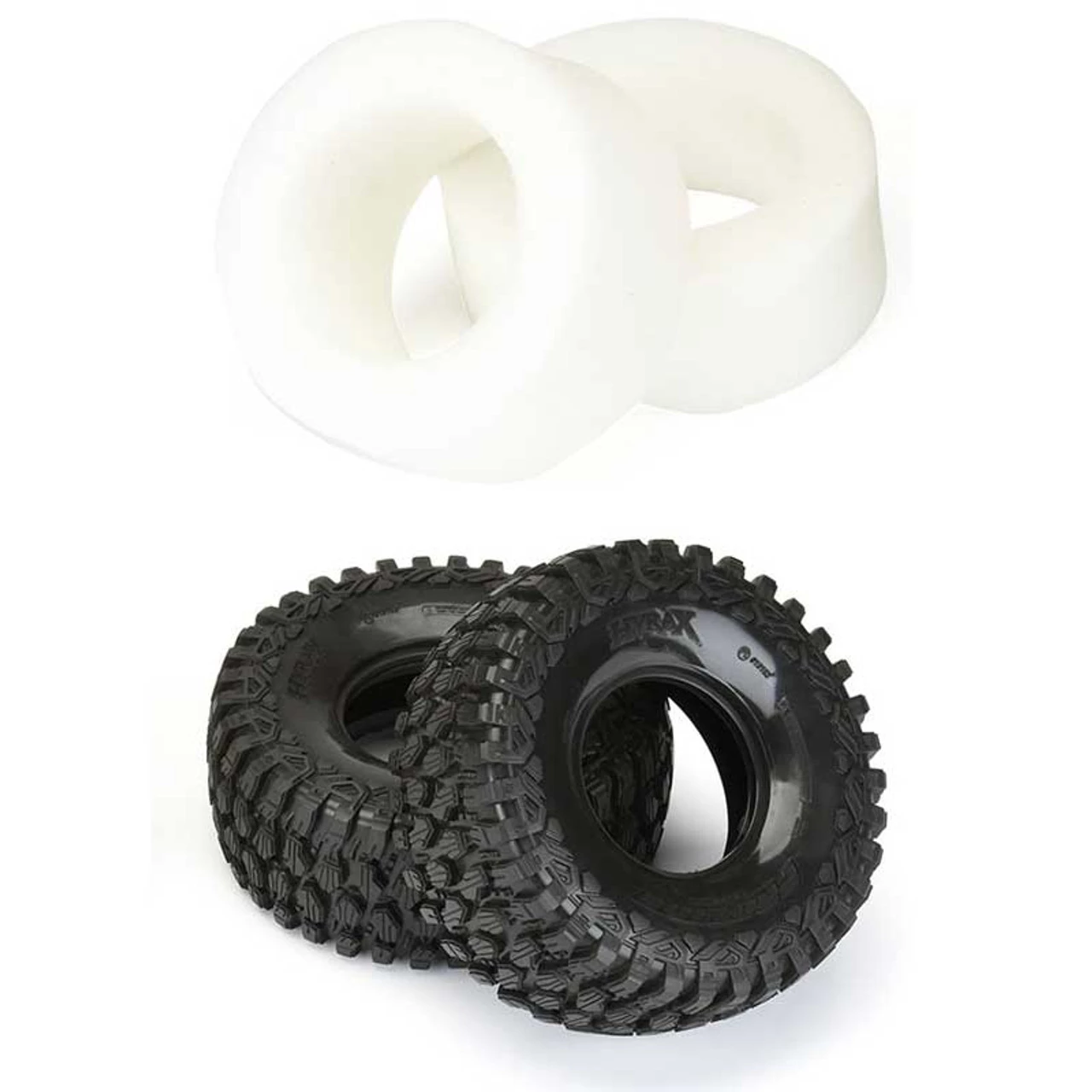These are the Pro-Line Hyrax All Terrain Tires with Foam Inserts for the Traxxas Unlimited Desert Racer Front and Rear. Each pack includes two tires and two inserts.