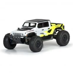This is the Pro-Line Jeep Gladiator Rubicon Clear Body with Decals for 1/10 Short Course and 1/8 Monster Trucks.