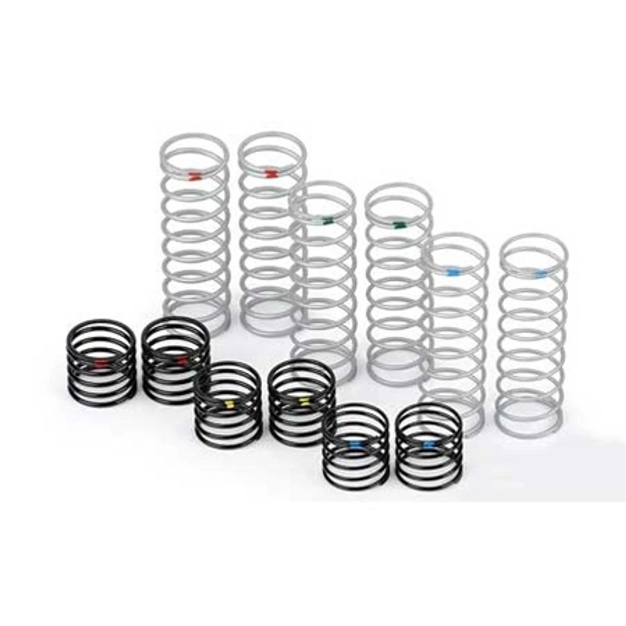 Take your PowerStroke shocks to the next level with Pro-Line’s Spring Assortment. Now you can adjust ride heights and dual-rate spring rates almost infanitly with these color coded springs. Kits come with six primary (short) and six secondary (long) high guality springs with color coded stripes to referance rates.