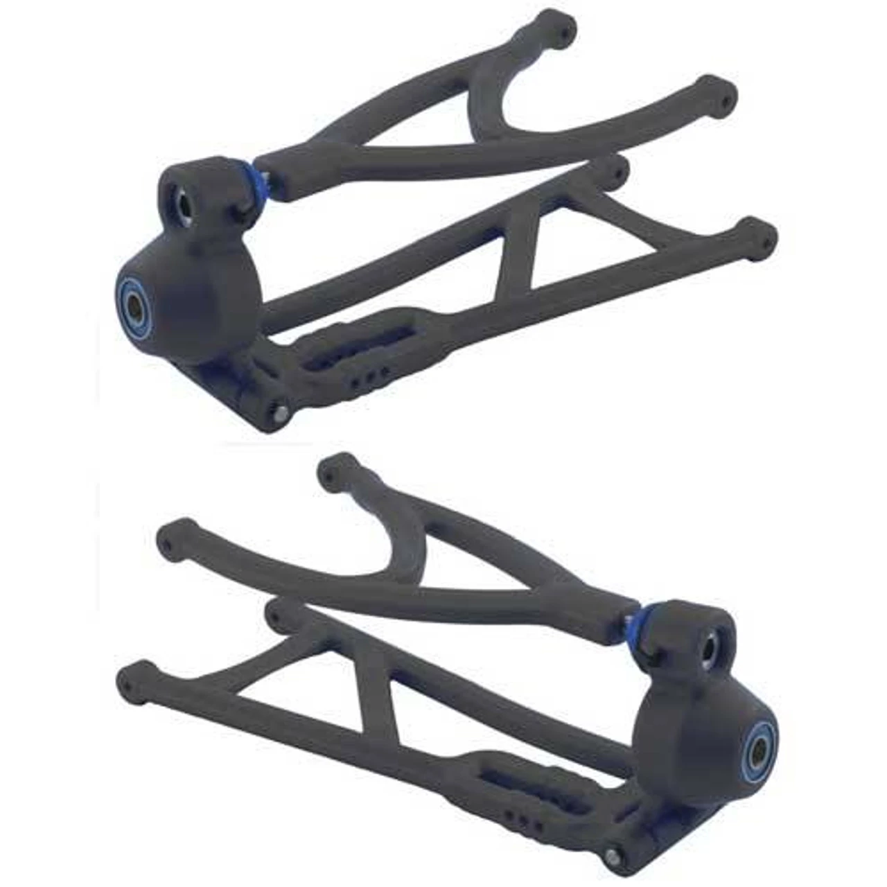This is the RPM True-Track Rear A-Arm Conversion in Black for all versions of the Traxxas Revo 2.5, 3.3, E-Revo, and E-Revo Brushless. This setup is lighter, stronger, and eliminates the bump steer of the rear end!