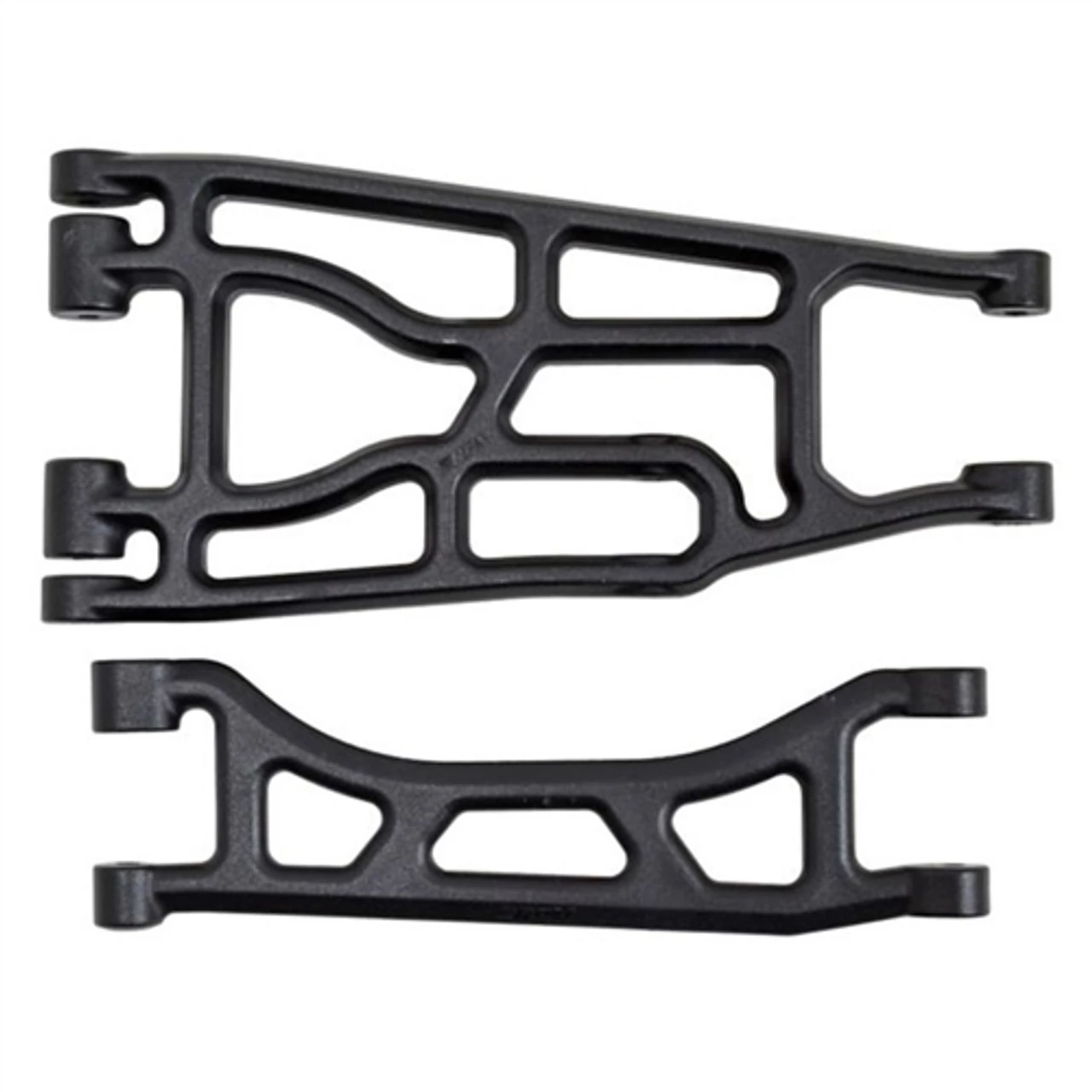 This is a pair of RPM Upper and Lower Suspension A-Arms for the Traxxas X-Maxx 6S and 8S trucks. This includes one upper and one lower arm. The upper arm replaces Traxxas part 7729, and the lower arm can be used in place of Traxxas part 7730 or 7731. To outfit an entire truck, four packages of these are required.