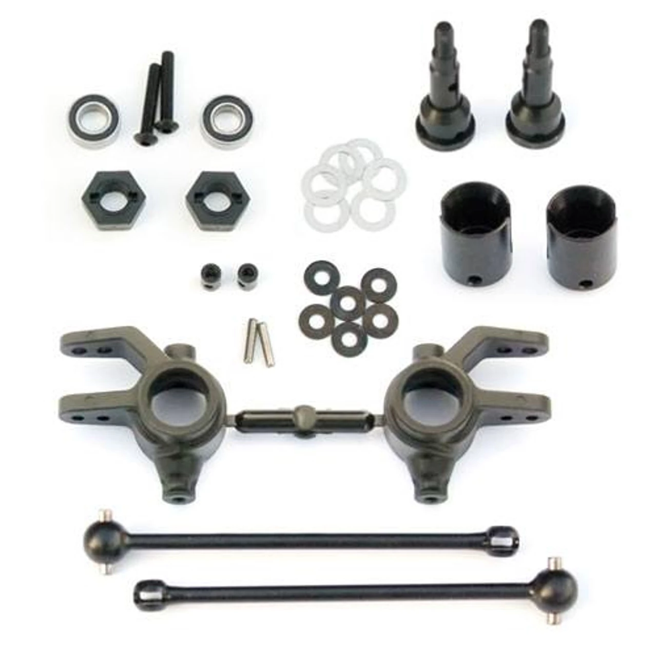 This is the Tekno RC M6 Front Driveshaft, Steering Block, and Stub Axle set.