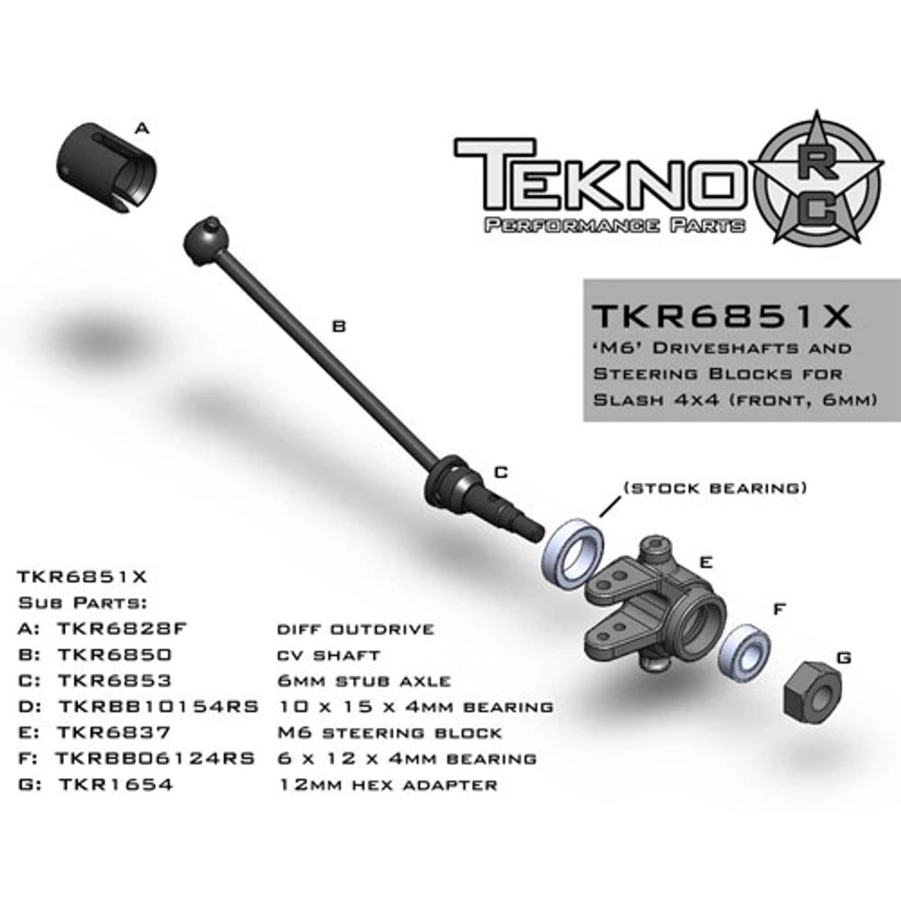 The Tekno RC M6 Driveshafts and Steering Blocks will give your Slash 4×4, Stampede 4×4, Rustler 4×4, and Hoss the ultimate in performance and durability.For the ultimate in performance and durability for your truck, this set is the answer!