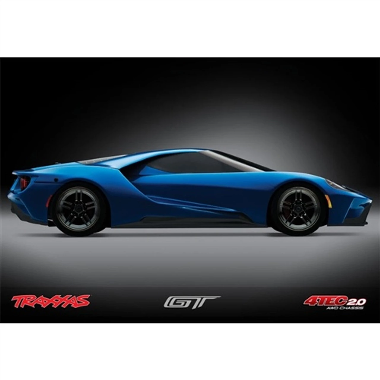 Traxxas has captured the Ford GT in a stunning 1/10 scale replica that is faithful to the beautiful and functional styling of the incredible flying buttress design. Every detail is there including the taillights and exhaust tips. Built to be driven, this Ford GT replica rests on the Traxxas 4-Tec 2.0 chassis thatÂ’s all-new from the ground up.
