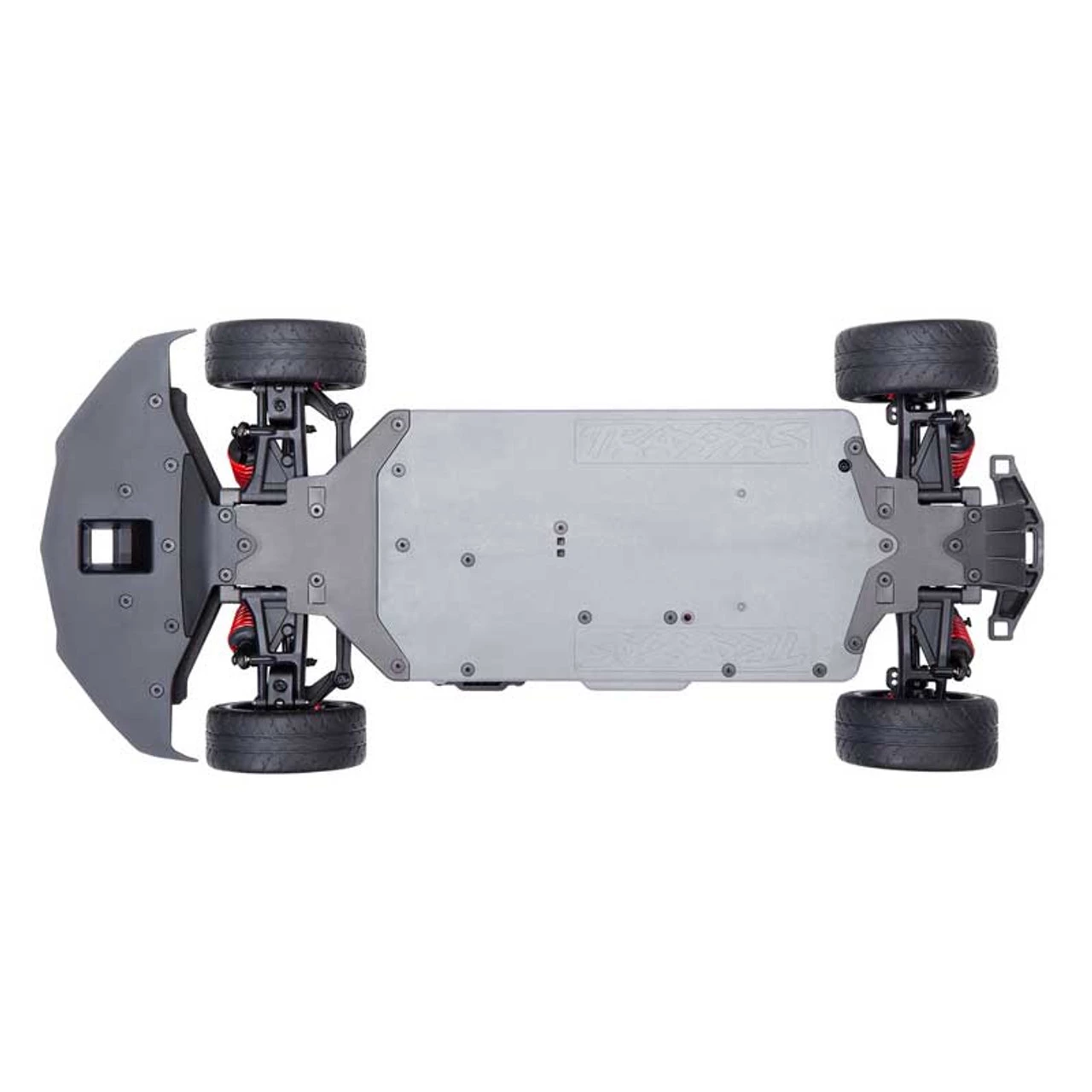The name synonymous with American sports car excellence: Corvette. From injection-molded inserts to LED-ready lenses, Traxxas meticulously recreates the new Stingray body with stunning accuracy. Beneath the rear “glass” the engine bay shows off a realist recreation of the 16-valve V8. Replica wheels shine in stealthy black chrome, and wide tries fill out the rear fender wheels to match the full-size machine’s muscular stance. The new 4-Tec 3.0 chassis features a longer wheelbase and wider track developed specifically for the Corvette Stingray. The simulated LT2 V8 is visible beneath the rear hatch. The integrated quick-release system secures the body invisibly, this hidden mechanism delivers a secure hold and releases in seconds to provide chassis access.