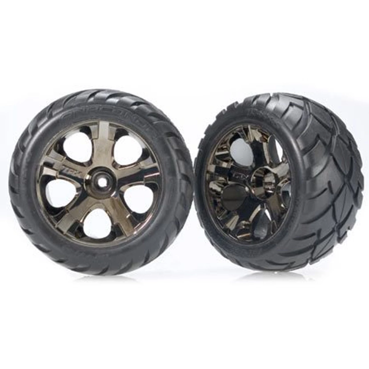This is a pair of the Traxxas Nitro Rear/Electric Front All Star Wheels and Anaconda Tires.