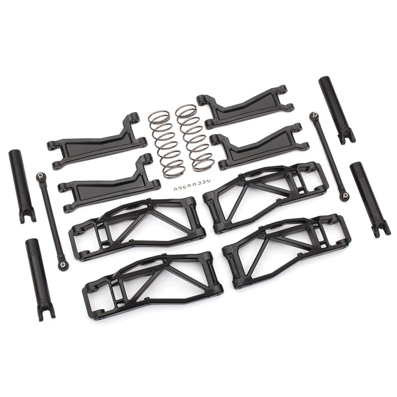 This is the Traxxas Maxx 4S Black WideMaxx Suspension Kit. The set includes Front and Rear Suspension Arms, Front Toe Links, Rear Shock Springs.