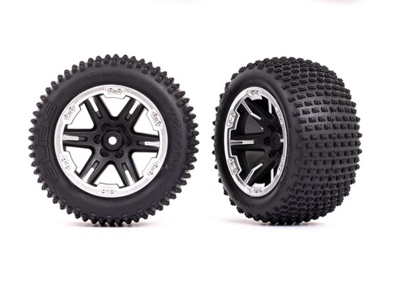 Alias step-pin tires provide excellent traction in dirt and other loose surfaces. The tires come mounted with foam inserts and pre-glued to 2.8″ black and satin chrome RXT wheels for no-hassle, out-of-the-box bolt-on installation. TSM-rated for high-speed applications.Â