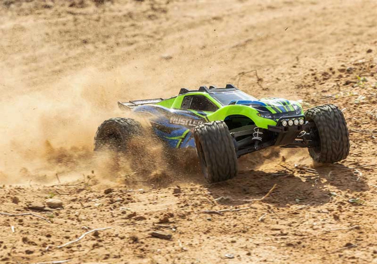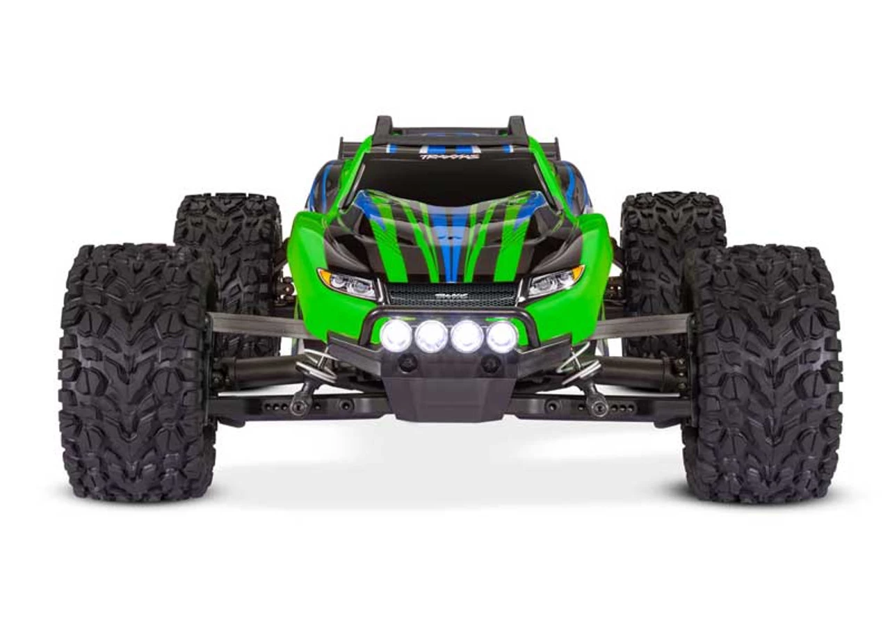 The Rustler 4X4 includes LED lighting as standard equipment for more fun after dark. Thick impact-resistant bumpers protect the lights against crash damage with fully-waterproof construction for all-weather fun.