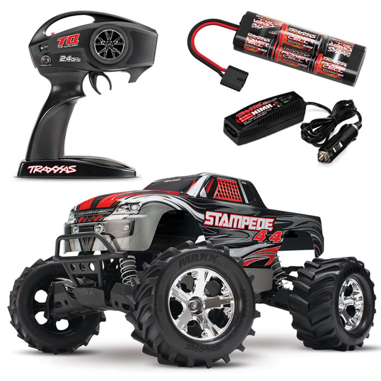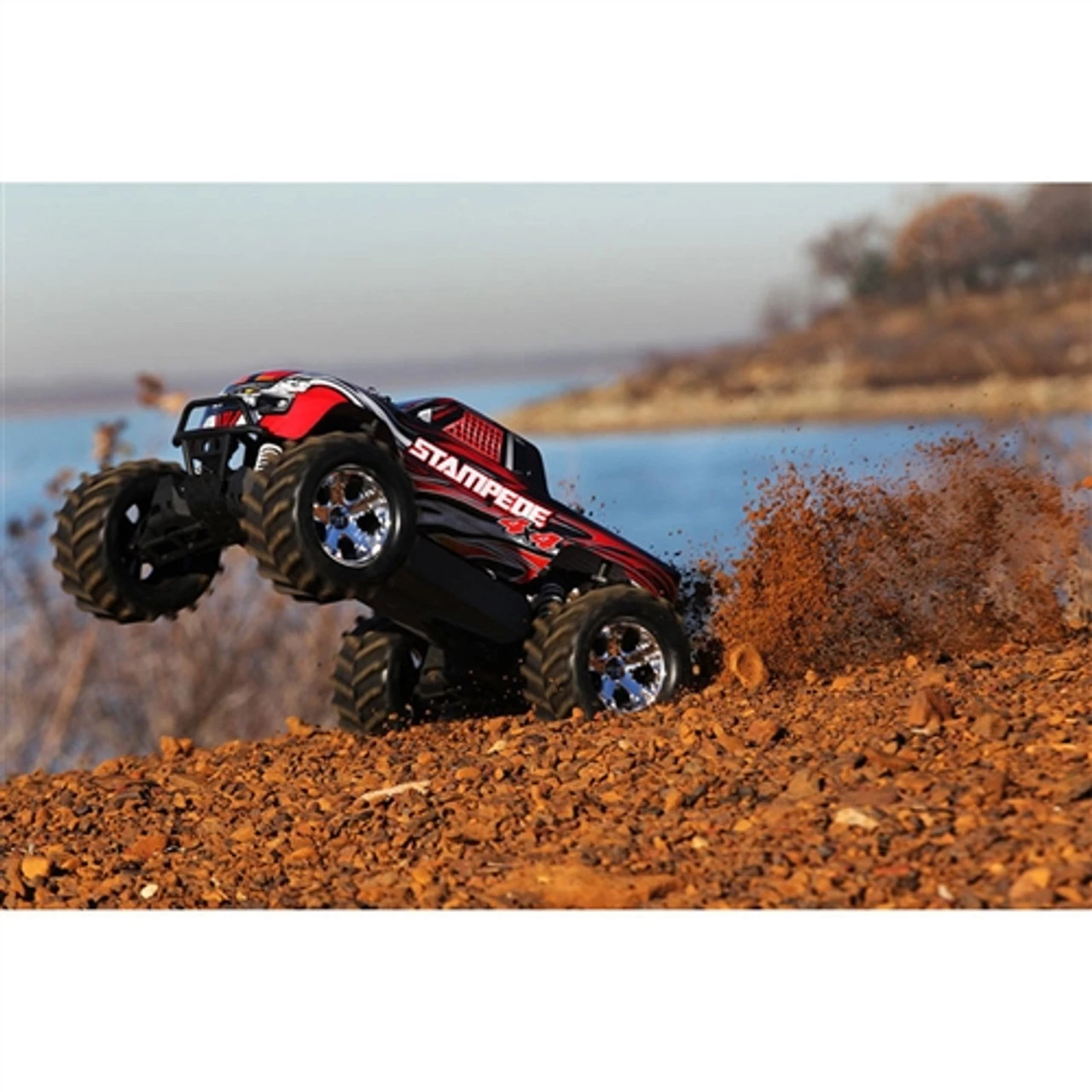 Stampede 4X4 comes fully-assembled and Ready-To-Race with the TQ 2.4GHz radio system, XL-5 electronic speed control, Titan 12T motor, painted and decaled body, pre-glued tires, and detailed instructions. Traxxas backs Stampede 4X4 and all of their products with top-notch support that is second to none. A staff of skilled representatives is on-hand at Traxxas to answer your questions via phone, website, or e-mail. Unmatched parts support allows Stampede 4X4 to be serviced with parts and support from thousands of hobby dealers worldwide. Your investment is also protected by the Traxxas Lifetime Electronics Warranty. Traxxas goes the extra mile to ensure that your R/C experience is easy and fun (and fast!).