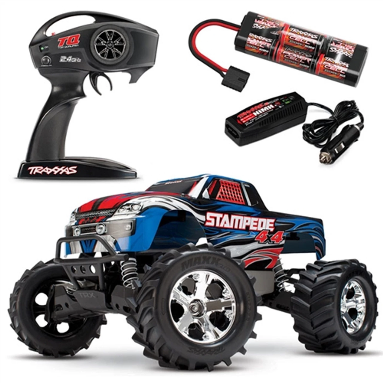 This is the Traxxas Stampede 4X4 XL-5 Brushed Electric Ready-to-Run RC Monster Truck with TQ 2.4GHz radio system, 7-Cell 3000mAh Battery Pack with iD connector, and 4-Amp DC Fast Charger. With waterproof electronics and 4-wheel drive, the Stampede 4X4 XL-5 provides fun in all weather conditions, at an affordable price!