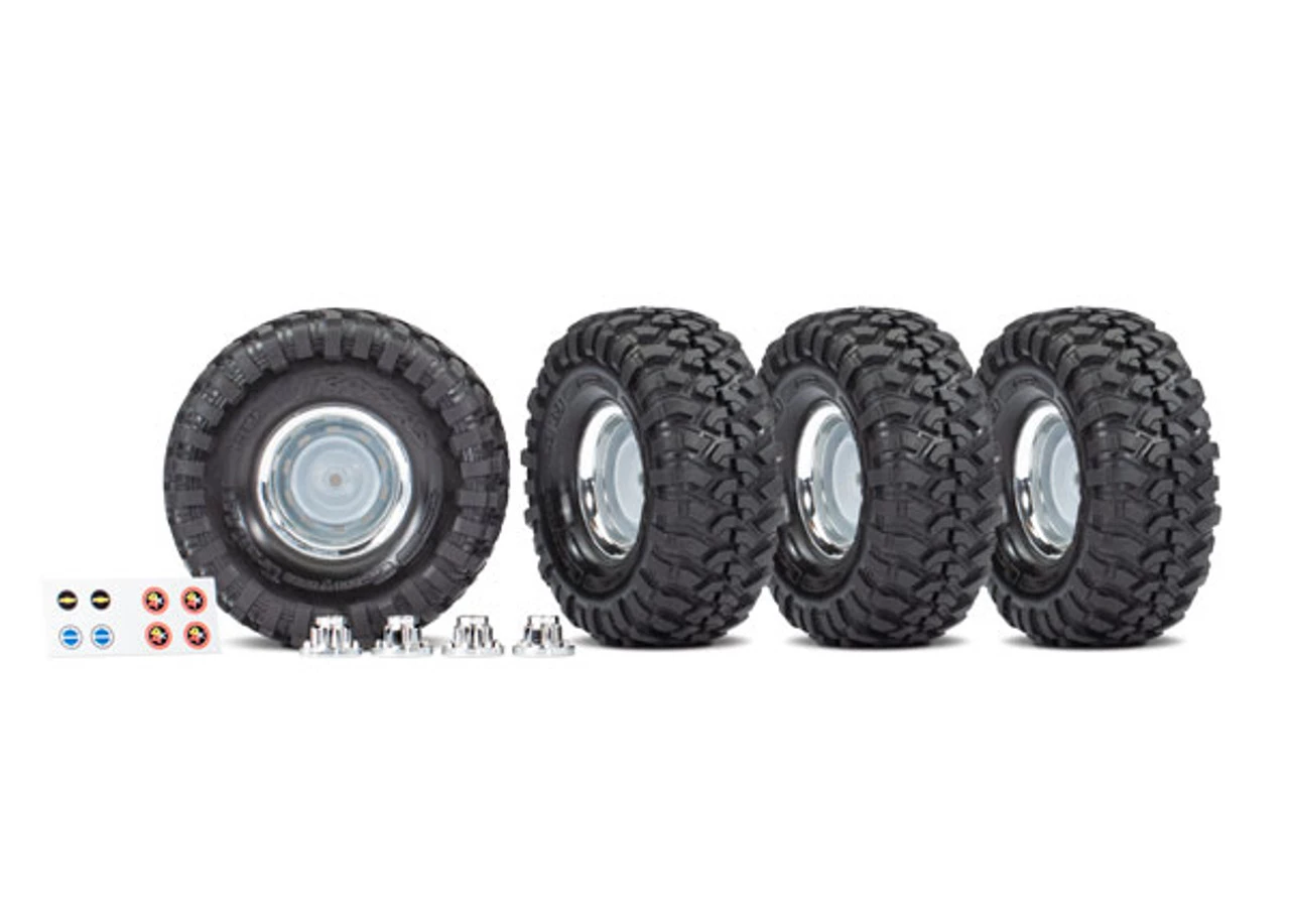 Traxxas TRX-4 Canyon Trail Tires on 1.9″ Chrome Wheels w/Center Caps FULL SET OF 4 (requires #8255A extended stub axle)