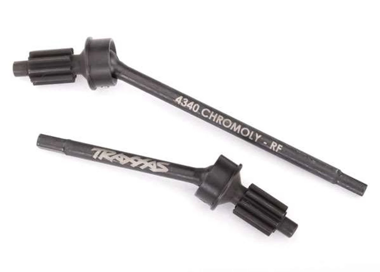 These are the Traxxas TRX-4 Front Machined Chomoly Steel Heavy Duty Axle Shafts with Portal Drive Input Gears. This includes the left and right axle set. These are an excellent upgrade to beef up your TRX-4 driveline.