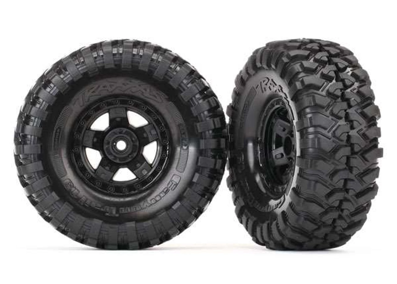 This is a pair of Traxxas Canyon Trail Tires Pre-Mounted on 1.9″ TRX-4 Sport Wheels. These come fully-assembled with foam inserts inside the tires as well. The wheels have a 12mm hex, making them compatible with the TRX-4 vehicles, as well as many other 1/10 crawlers and trail trucks.